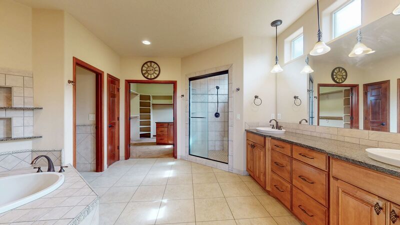 * Primary bedroom has connected bathroom with a walk-in closet, soaker tub, and dual vanities